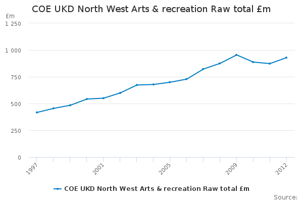 Download this time seriesCOE UKD North West Arts & recreation Raw total £m