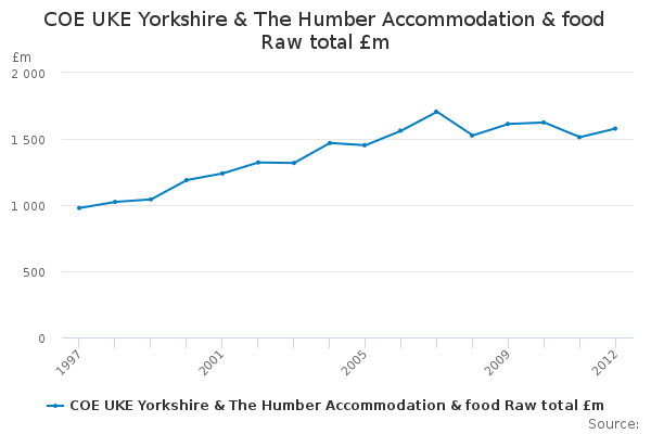 Download this time seriesCOE UKE Yorkshire & The Humber Accommodation & food Raw total £m