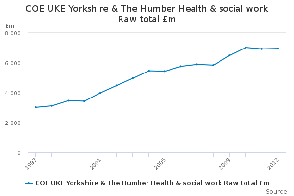 Download this time seriesCOE UKE Yorkshire & The Humber Health & social work Raw total £m
