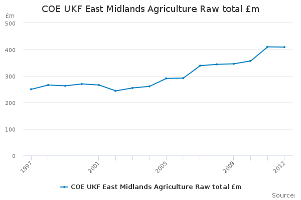 Download this time seriesCOE UKF East Midlands Agriculture Raw total £m
