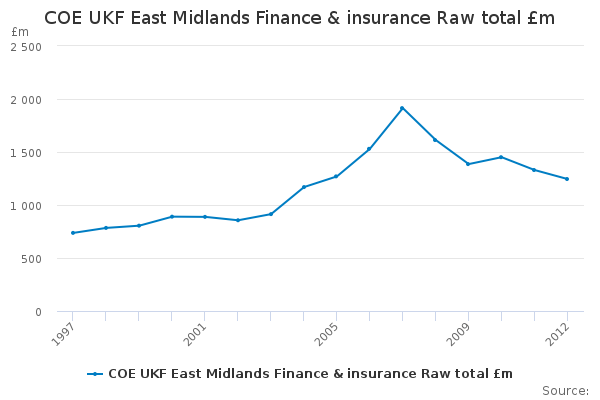 Download this time seriesCOE UKF East Midlands Finance & insurance Raw total £m