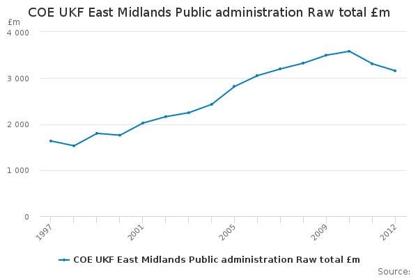 Download this time seriesCOE UKF East Midlands Public administration Raw total £m