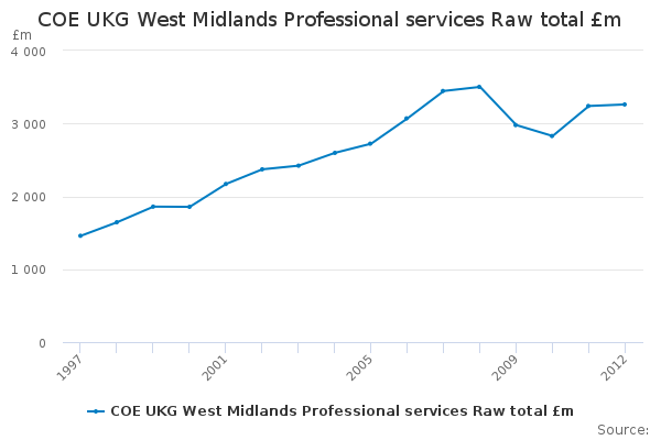 Download this time seriesCOE UKG West Midlands Professional services Raw total £m