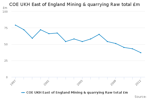 Download this time seriesCOE UKH East of England Mining & quarrying Raw total £m