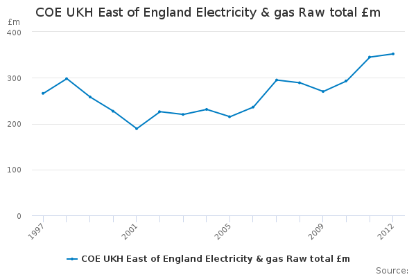 Download this time seriesCOE UKH East of England Electricity & gas Raw total £m