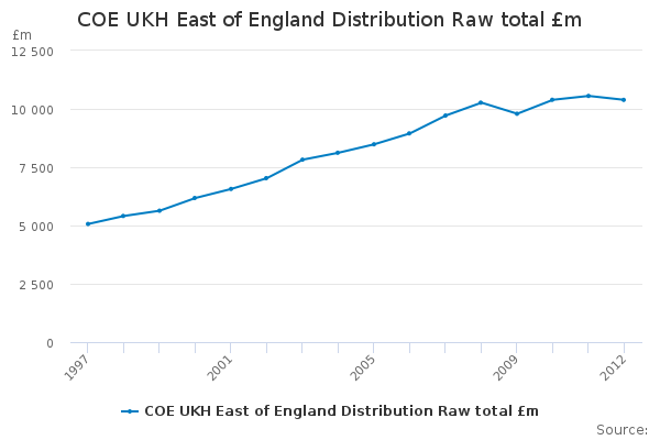 Download this time seriesCOE UKH East of England Distribution Raw total £m