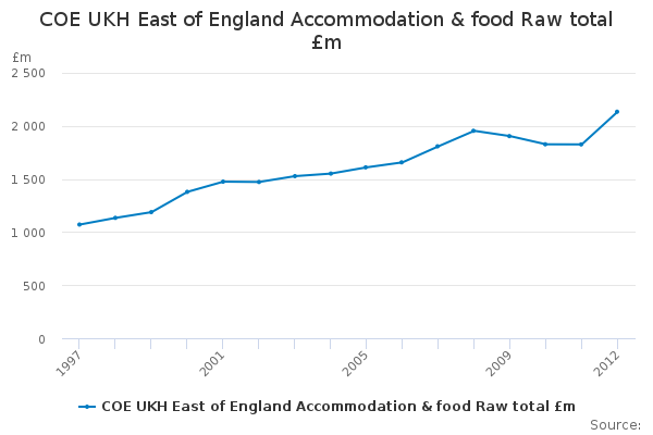 Download this time seriesCOE UKH East of England Accommodation & food Raw total £m