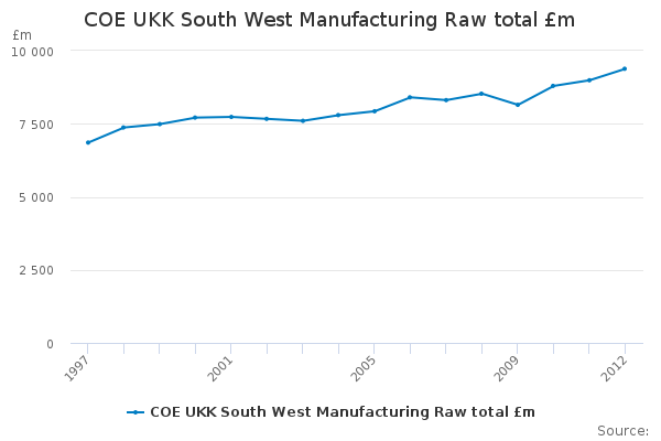 Download this time seriesCOE UKK South West Manufacturing Raw total £m