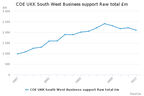 Download this time seriesCOE UKK South West Business support Raw total £m