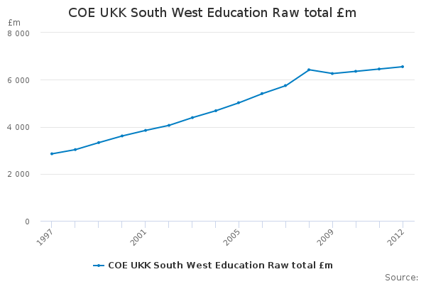 Download this time seriesCOE UKK South West Education Raw total £m