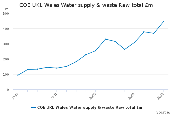 Download this time seriesCOE UKL Wales Water supply & waste Raw total £m