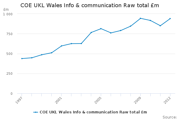 Download this time seriesCOE UKL Wales Info & communication Raw total £m