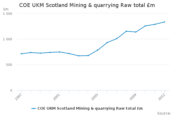 Download this time seriesCOE UKM Scotland Mining & quarrying Raw total £m