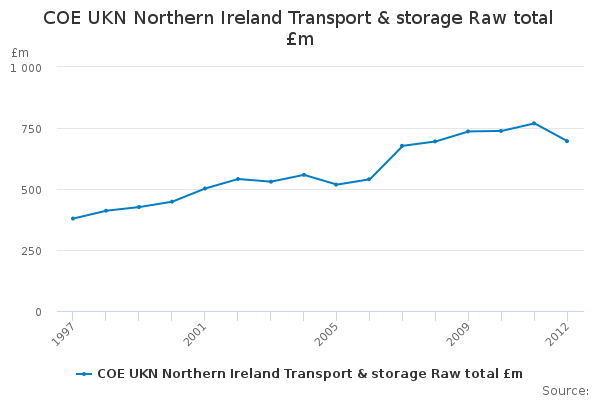Download this time seriesCOE UKN Northern Ireland Transport & storage Raw total £m