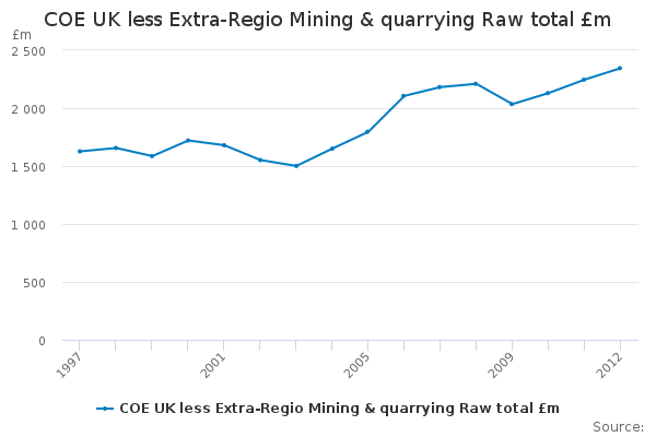 Download this time seriesCOE UK less Extra-Regio Mining & quarrying Raw total £m