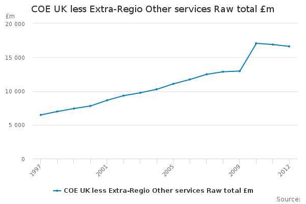 Download this time seriesCOE UK less Extra-Regio Other services Raw total £m