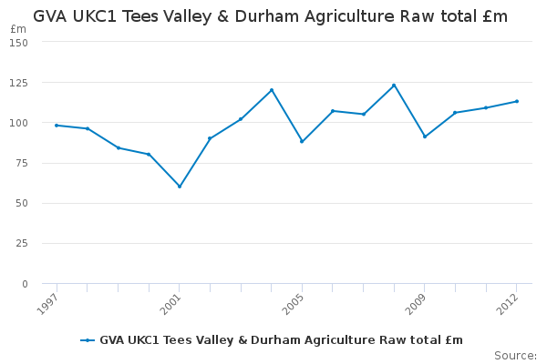 Download this time seriesGVA UKC1 Tees Valley & Durham Agriculture Raw total £m