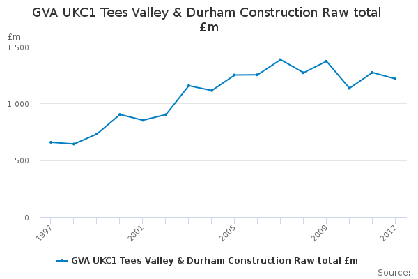 Download this time seriesGVA UKC1 Tees Valley & Durham Construction Raw total £m
