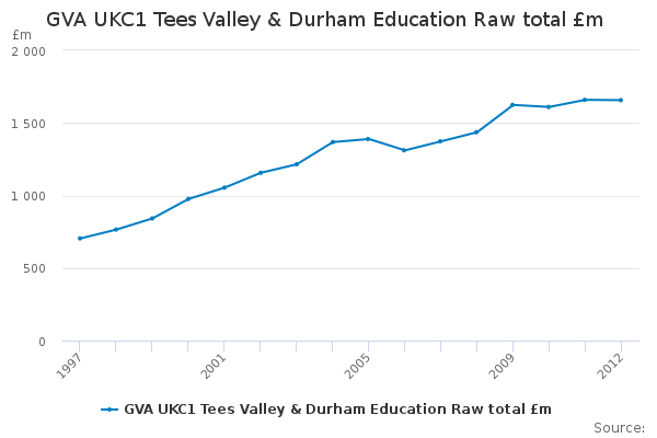 Download this time seriesGVA UKC1 Tees Valley & Durham Education Raw total £m