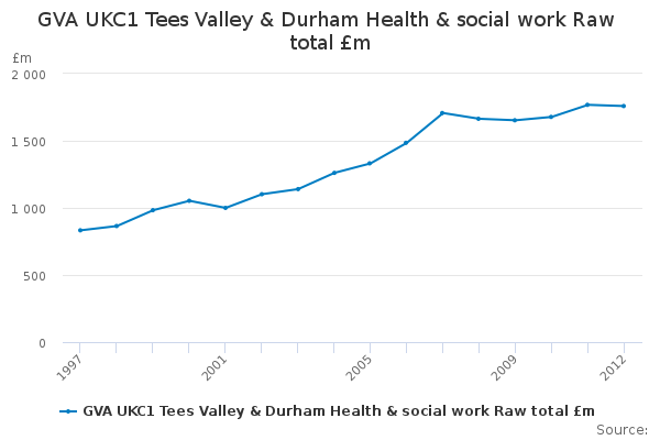 Download this time seriesGVA UKC1 Tees Valley & Durham Health & social work Raw total £m