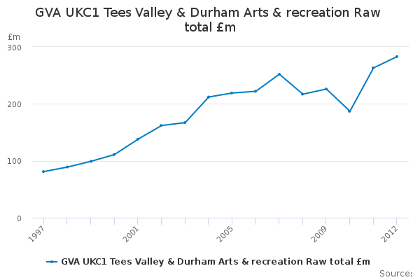 Download this time seriesGVA UKC1 Tees Valley & Durham Arts & recreation Raw total £m