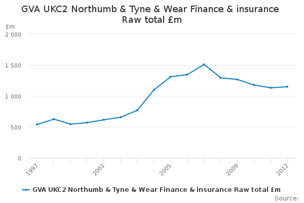 Download this time seriesGVA UKC2 Northumb & Tyne & Wear Finance & insurance Raw total £m
