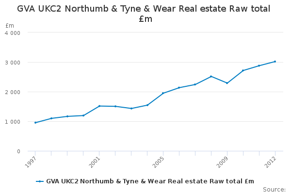 Download this time seriesGVA UKC2 Northumb & Tyne & Wear Real estate Raw total £m