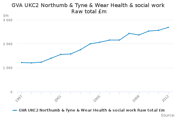 Download this time seriesGVA UKC2 Northumb & Tyne & Wear Health & social work Raw total £m