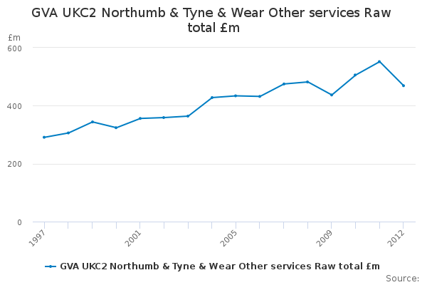 Download this time seriesGVA UKC2 Northumb & Tyne & Wear Other services Raw total £m