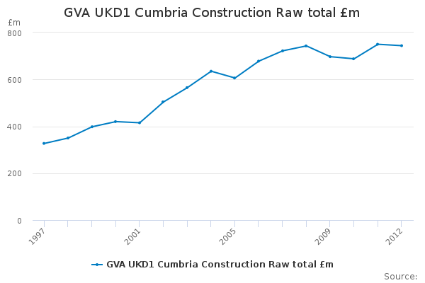 Download this time seriesGVA UKD1 Cumbria Construction Raw total £m