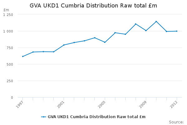 Download this time seriesGVA UKD1 Cumbria Distribution Raw total £m