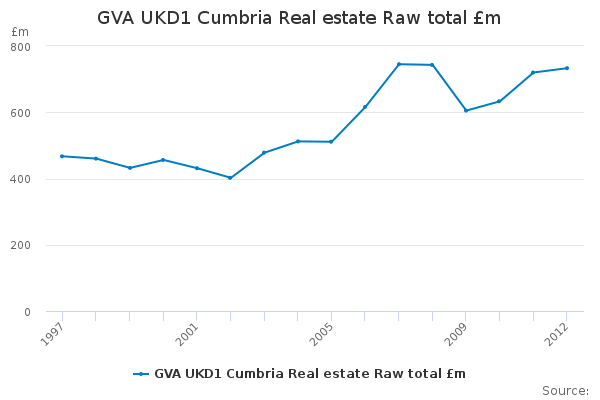Download this time seriesGVA UKD1 Cumbria Real estate Raw total £m