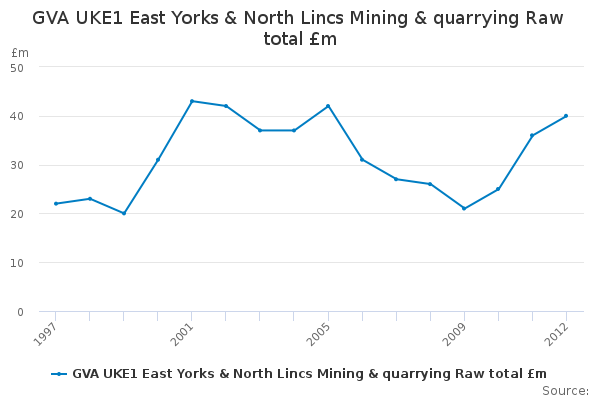 Download this time seriesGVA UKE1 East Yorks & North Lincs Mining & quarrying Raw total £m