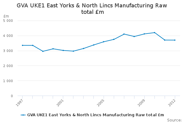 Download this time seriesGVA UKE1 East Yorks & North Lincs Manufacturing Raw total £m