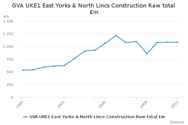 Download this time seriesGVA UKE1 East Yorks & North Lincs Construction Raw total £m