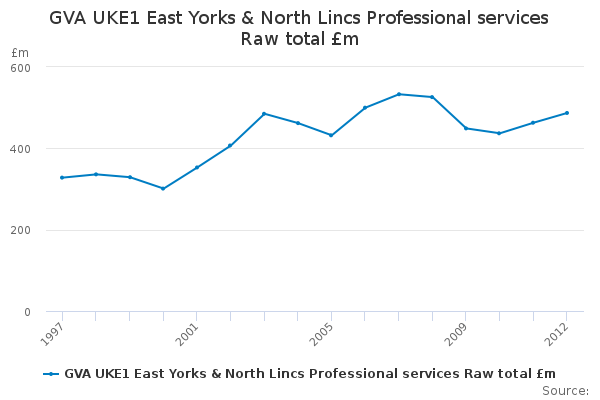 Download this time seriesGVA UKE1 East Yorks & North Lincs Professional services Raw total £m