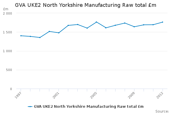 Download this time seriesGVA UKE2 North Yorkshire Manufacturing Raw total £m