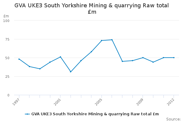 Download this time seriesGVA UKE3 South Yorkshire Mining & quarrying Raw total £m