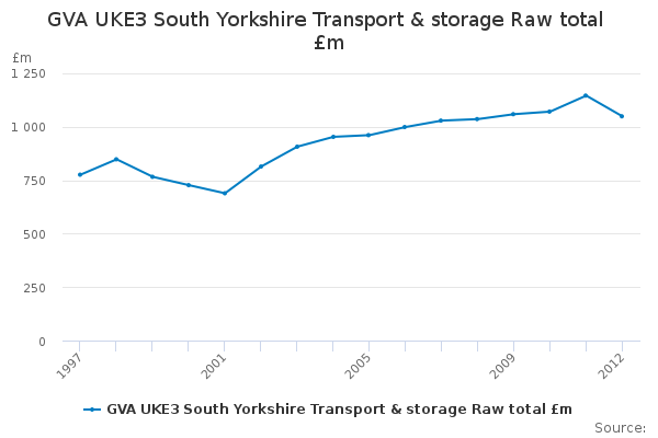 Download this time seriesGVA UKE3 South Yorkshire Transport & storage Raw total £m