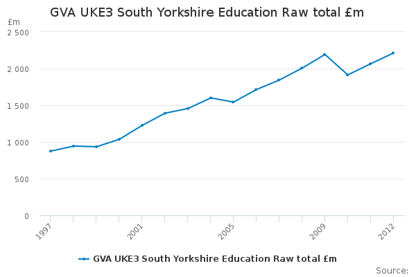 Download this time seriesGVA UKE3 South Yorkshire Education Raw total £m