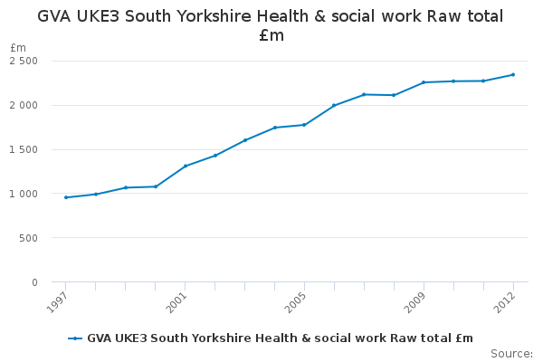 Download this time seriesGVA UKE3 South Yorkshire Health & social work Raw total £m