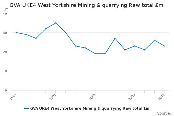 Download this time seriesGVA UKE4 West Yorkshire Mining & quarrying Raw total £m