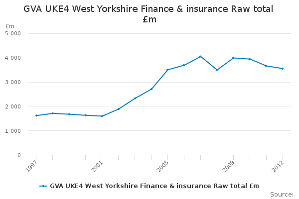 Download this time seriesGVA UKE4 West Yorkshire Finance & insurance Raw total £m