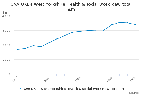 Download this time seriesGVA UKE4 West Yorkshire Health & social work Raw total £m