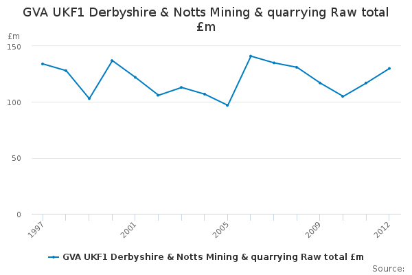 Download this time seriesGVA UKF1 Derbyshire & Notts Mining & quarrying Raw total £m
