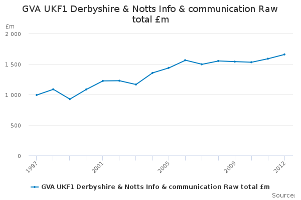 Download this time seriesGVA UKF1 Derbyshire & Notts Info & communication Raw total £m