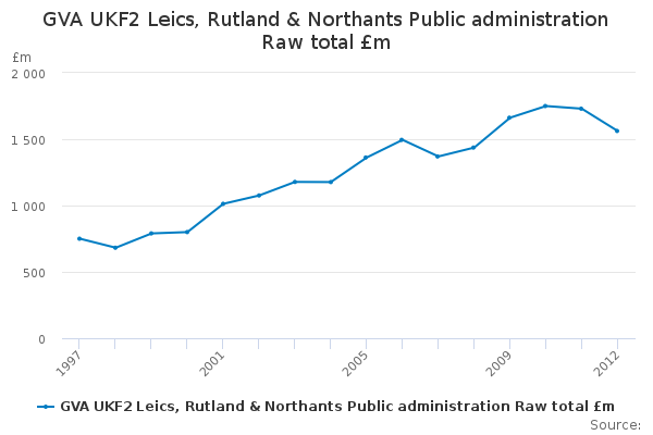 Download this time seriesGVA UKF2 Leics, Rutland & Northants Public administration Raw total £m