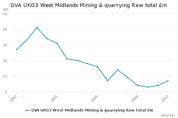 Download this time seriesGVA UKG3 West Midlands Mining & quarrying Raw total £m