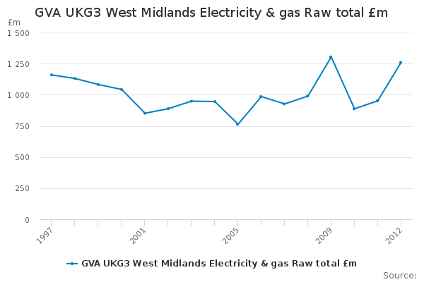 Download this time seriesGVA UKG3 West Midlands Electricity & gas Raw total £m