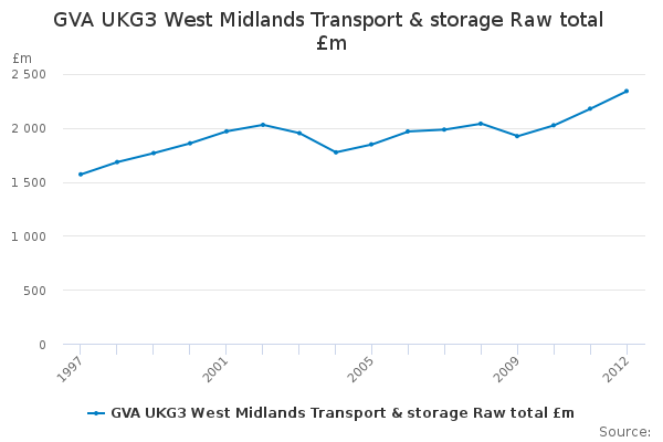 Download this time seriesGVA UKG3 West Midlands Transport & storage Raw total £m